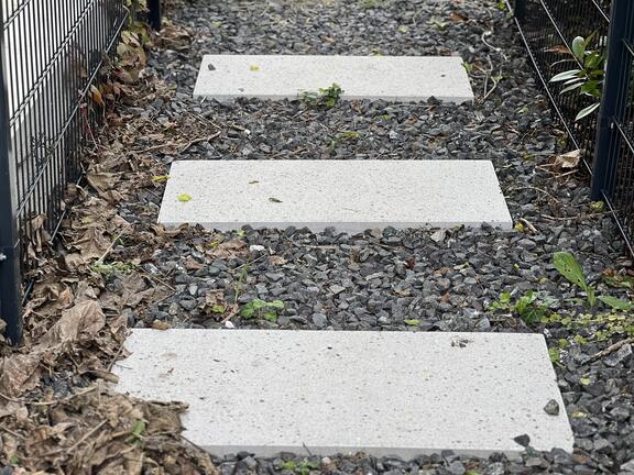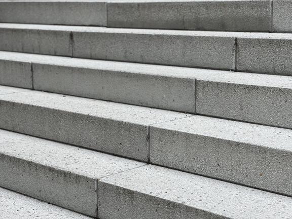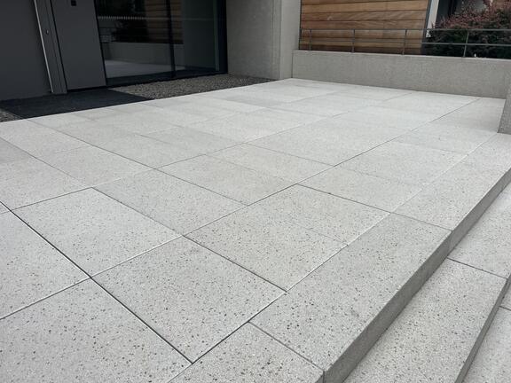 Marches d'escalier en L, qui servent d'escalier d'entrée avec une connexion à la terrasse.