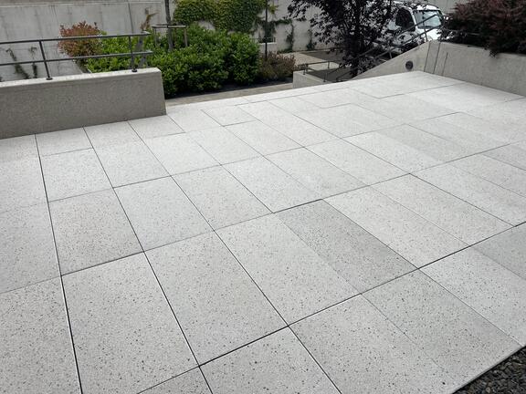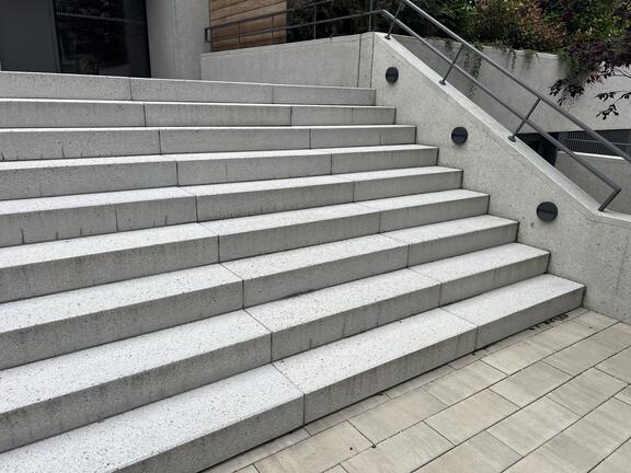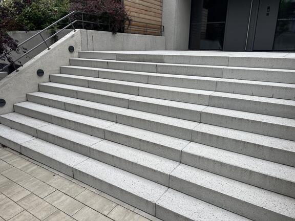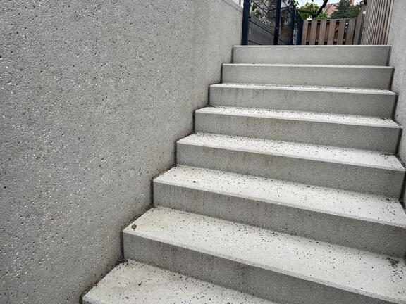 L'immeuble Hausberg, situé dans un quartier résidentiel de Palisády, a été conçu pour une solution complète en béton alliant fonctionnalité et design moderne. La réalisation comprenait la production et la livraison de plusieurs types d'éléments en béton, dotés d'une surface enduite grise uniforme. L'ensemble a été conçu comme une unité fonctionnelle, où tous les éléments en béton se complètent. La surface enduite assure non seulement la sécurité, mais crée également une unité visuelle entre l'escalier, la terrasse et les éléments environnants. Un espace extérieur moderne a été créé, combinant parfaitement tous les éléments architecturaux, alliant praticité et esthétique contemporaine.